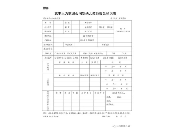 為滿足我市公辦幼兒園師資需求,我公司面向社會(huì)公開(kāi)招聘一大批非事業(yè)編合同制幼兒教師,以勞務(wù)派遣的方式與用人單位進(jìn)行勞動(dòng)力資源開(kāi)發(fā)合作。現(xiàn)將有關(guān)事項(xiàng)公告如下:一、招聘人數(shù)及崗位我市招聘非事業(yè)編合同制幼兒教師50名,具體崗位在選崗前公示。二、招聘方式通過(guò)第三方勞務(wù)公...